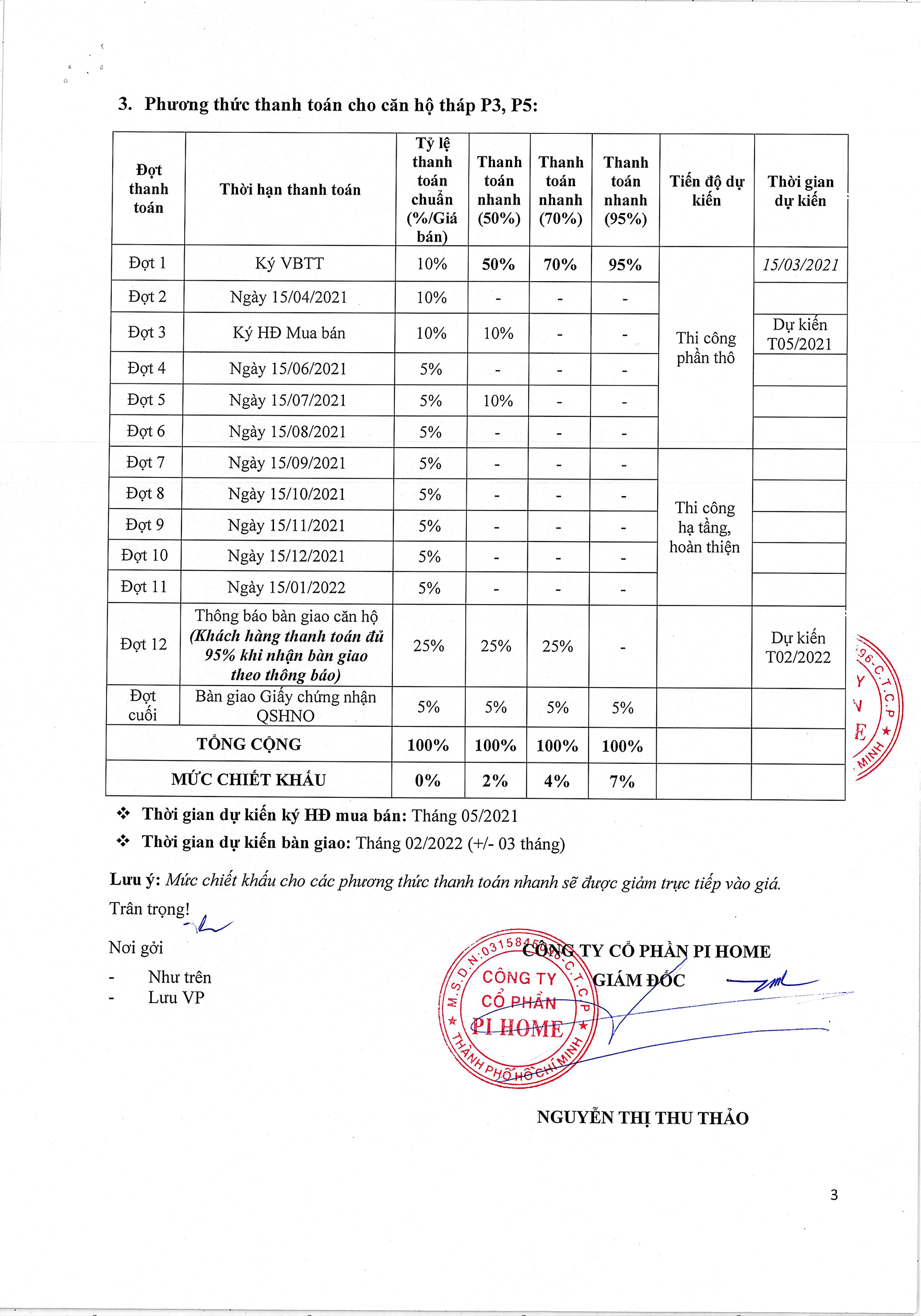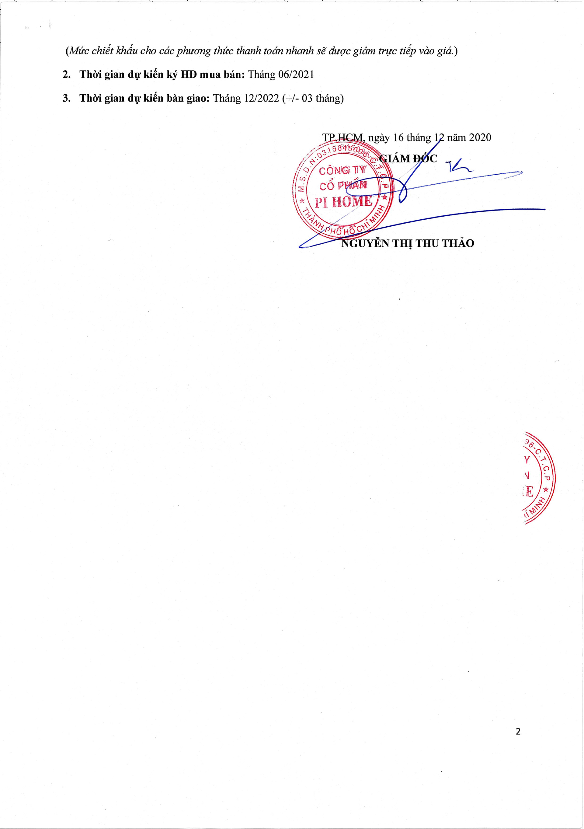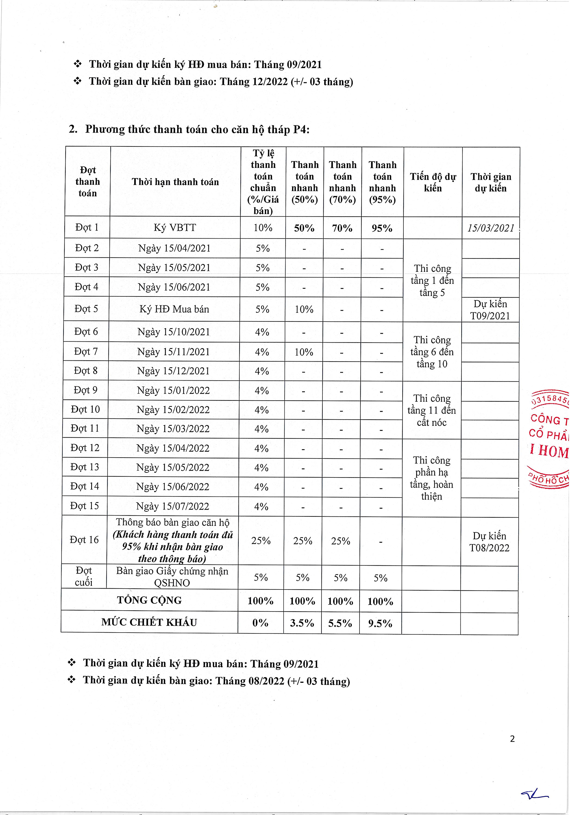 | 2 | Ký HĐMB | 10% | T4/2021 | |